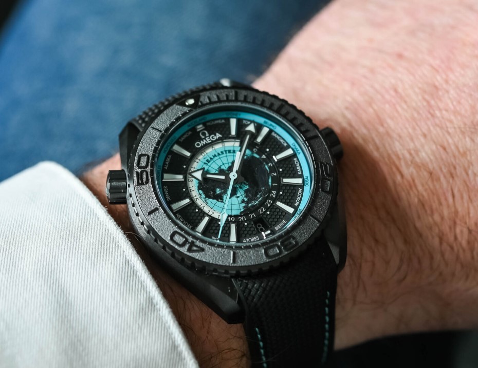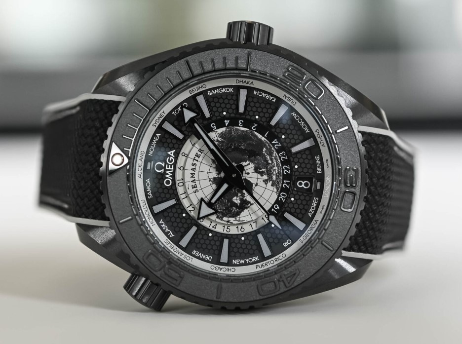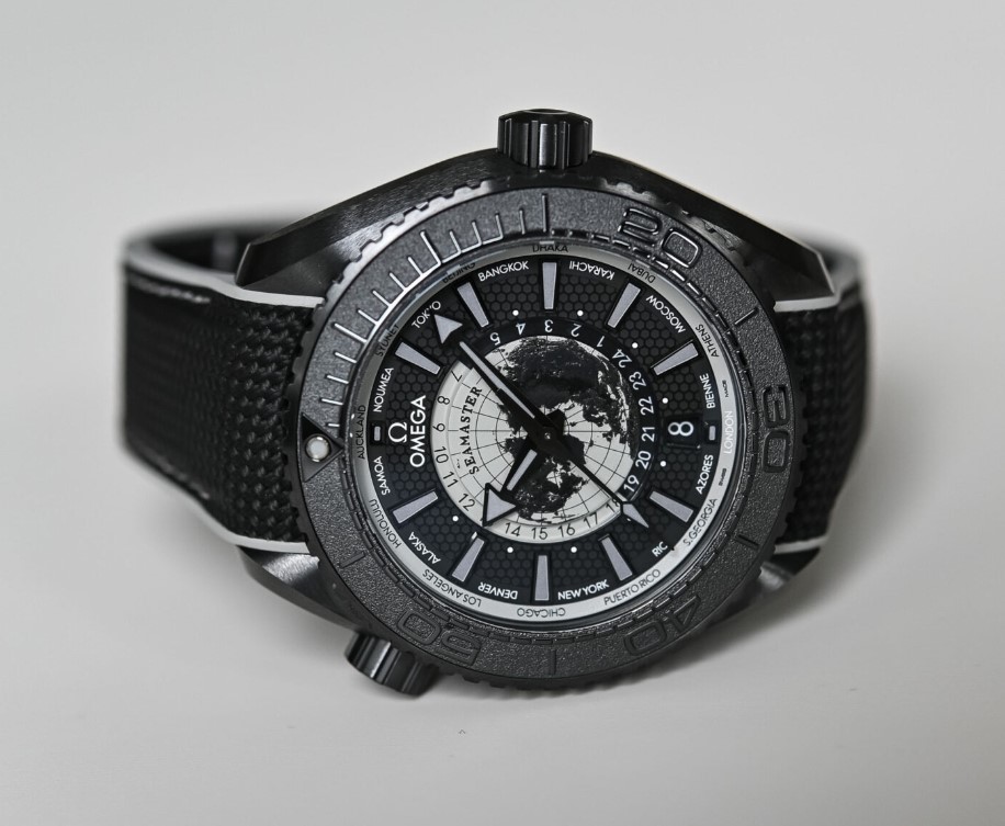 Born in 2005, it will be celebrating its 20th anniversary this year, and we can possibly expect a few surprises coming from Bienne. And the first one to emerge from the depths is this unprecedented take on the powerful Deep Black collection, the first PO to receive a world time complication. Here’s the brand-new Omega Seamaster Planet Ocean Worldtimer.